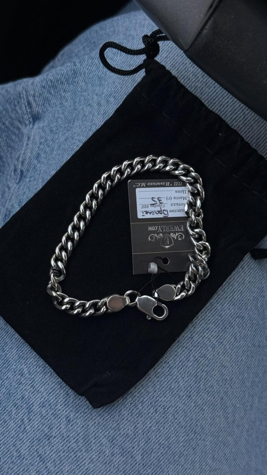 Full-fledged bracelet. The photo shows the Armored silver bracelet with a plate, this plate has a length of 3 cm and is engraved on the top with "Sentip" with a Youtube icon, and engraved on the bottom with the inscription "Bead".
