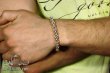 Full-fledged silver bracelet on hand.
