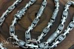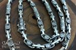 Full-fledged chain. This chain was custom-made for our client. This massive cast chain is crafted from 925 sterling silver with a blackened finish and adorned with Scandinavian-style runic symbols.