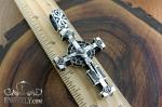 A crucifix cross made of 925 sterling silver with natural wood and black enamel