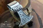 Pendant "Perun's Axe" made of 925 silver with runes and Slavic symbols of power