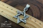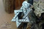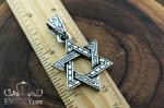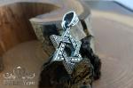The Star of David pendant, crafted from 925 sterling silver, is shaped like a three-dimensional six-pointed star with a detailed ornament.