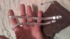 Походящая длина браслета зависит от его массы и обхвата запястья. Справа указаны массы браслета и диапазоны длин, на которые он должен быть больше обхвата запястья. Большинству людей подойдут такие размеры цепочек: - Крупное телосложение — 58-70 см
